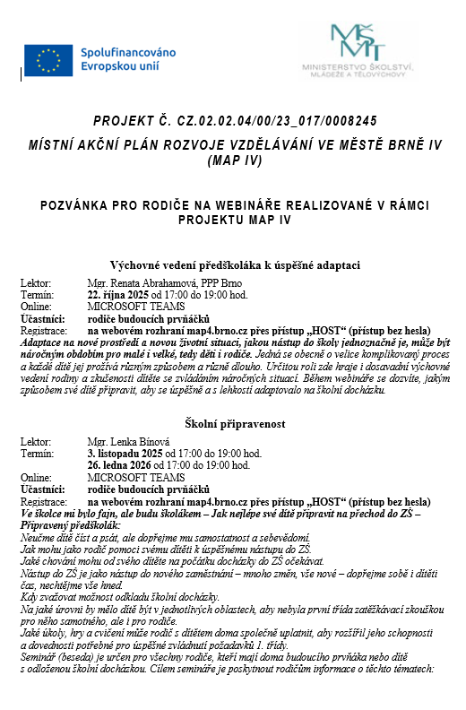 Vážení rodiče,